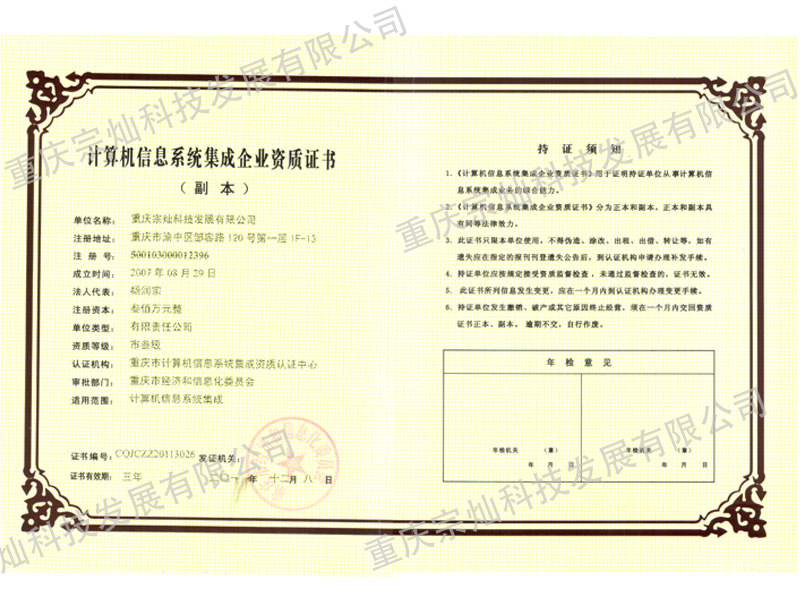計(jì)算機(jī)信息系統(tǒng)集成企業(yè)資質(zhì)證書