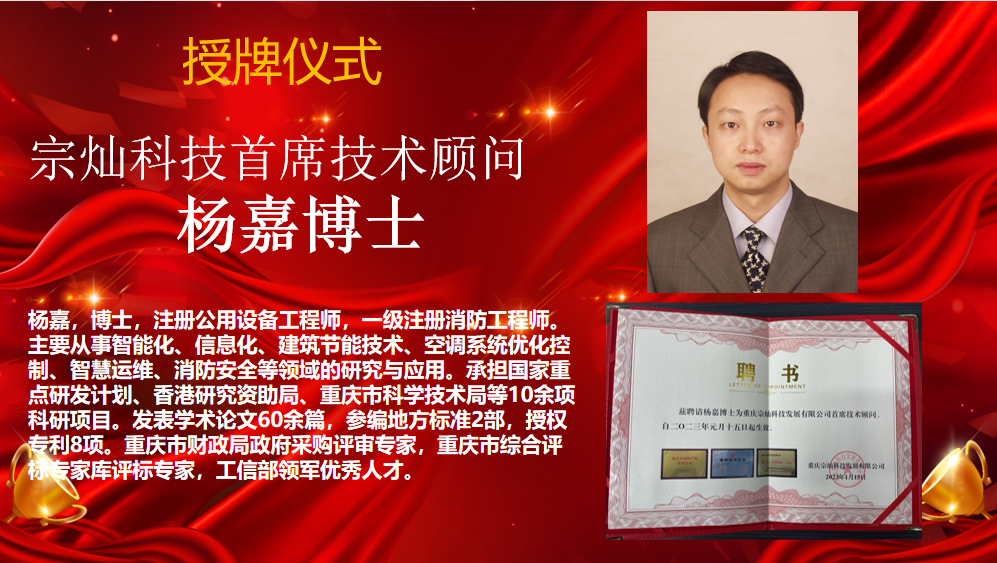 在本次年會(huì)上,宗燦科技邀請(qǐng)到楊嘉博士擔(dān)任首席技術(shù)顧問(wèn),并進(jìn)行了隆重的授牌儀式!趙向前先生親自為楊嘉博士頒發(fā)證書(shū)!隨后,楊嘉博士做了精彩發(fā)言!