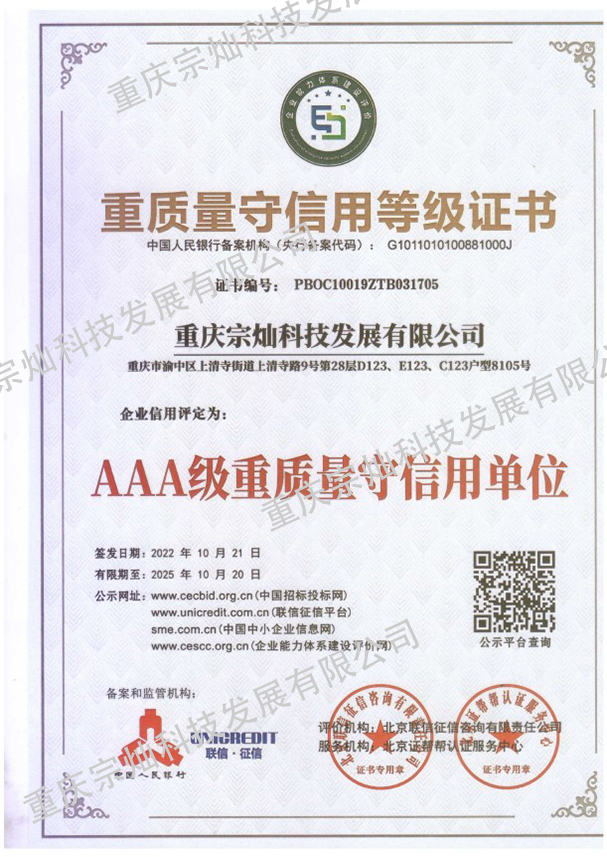 重質量守信用等級證書